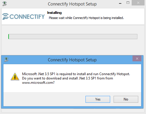 Bước 3: Chạy file ConnectifyHotspotInstaller.exe để cài đặt bình thường. Nếu phần mềm yêu cầu bạn cài Microsoft .Net 3.5 SP1 thì bạn nhấn Yes rồi chọn Download and Install this featuređể cài nhé.